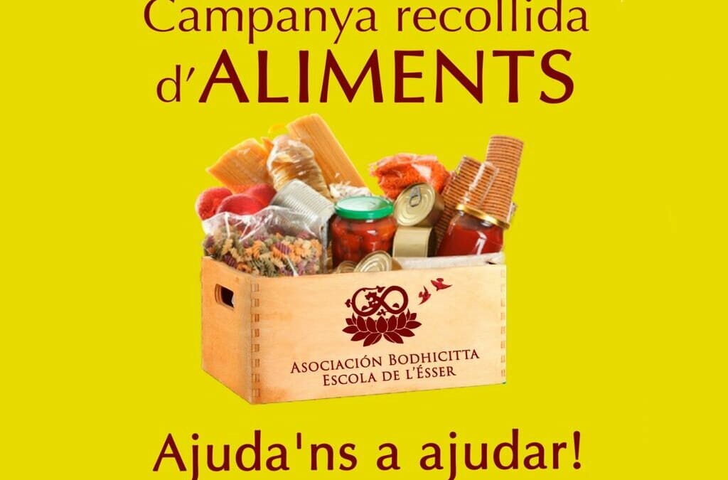 Fa dies que el Mestre Xavier Puigdevall va tenir la inspiració compassiva de fer recollida d’aliments solidaris. Vam posar fil a l’agulla ràpidament… informem a tothom d’aquesta nova acció solidària…posem unes caixes als passadissos de la seu de l’Asociación Bodichitta Escola de l’Esser a l’Escola de l’Esser, i la resposta de tothom ha estat generosament nodridora. En una setmana les caixes estan a vessar!