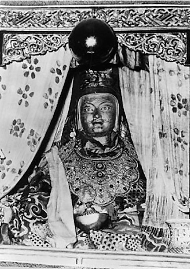 La fotografia original en blanc i negre va ser presa per la Reina Mare de Sikkim, S.A.R. Gyalyum Kunzang Dechen Tsomo Namgyal, en 1935 i després va ser retocada per computadora seguint el consell dels làmines que havien vist l’estàtua original, abans que fos destruïda durant la revolució cultural pels xinesos.
