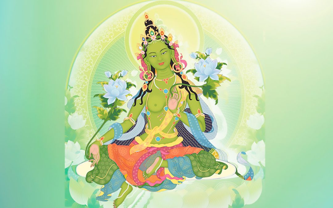 – Color Verde: El de una deidad despierta, de compasión activa. El color verde indica que Tara actúa para el beneficio de aquellos que recurren a ella y rezan con rapidez.