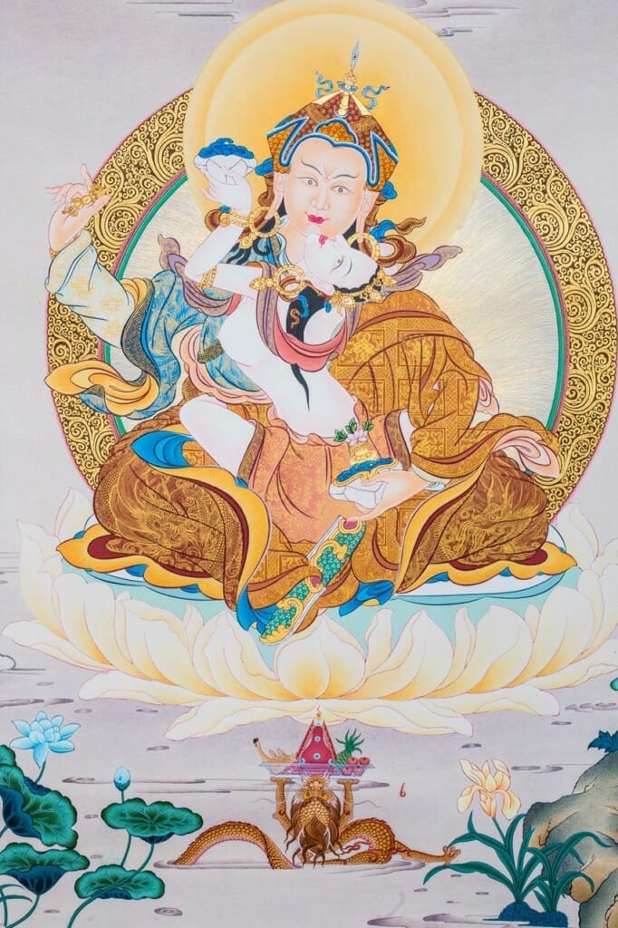 Debido a que era como un océano de Dharma que encarna las palabras del Buda, Guru Padmasambhava se hizo conocido como Guru Padmavajra, el Guru con el loto y el Vajra.